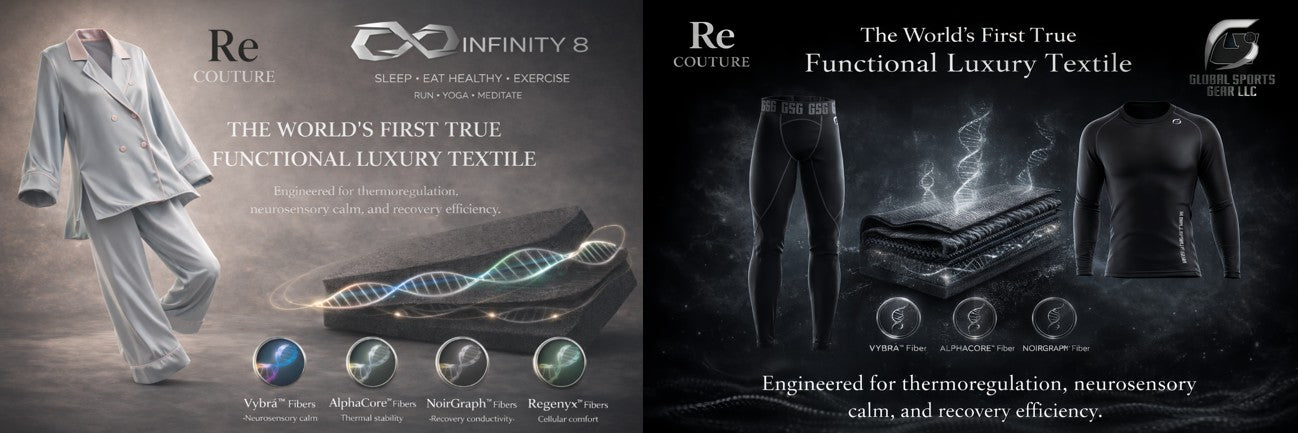 Crafted from ultra-soft TENCEL™ and powered by InfinityBlack™ Textiles—a proprietary fusion of Vybra™, ReGenyX™, AlphaCore™, and NoirGraph™ fibers—each piece delivers intelligent, skin-level support. From neurosensory calm and thermal balance to circulation support and cellular comfort, the system is engineered to reduce sleep friction, stabilize the nervous system, and restore equilibrium—without sacrificing indulgence.